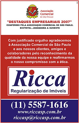 Ricca Regularização de Imóveis ganhou prêmio “DESTAQUE EMPRESARIAL 2007”, conferido pela Associação Comercial de São Paulo.
